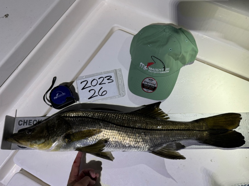 Josh Rhein of Sebastian took the Grand Slam with a total length of 77 inches and nine other anglers took in the 1st, 2nd and 3rd prizes for each of the three species targeted for a total prize payout of just shy of $9,000! And we successfully raised enough money to fund several kids' programs for Winter 2024, so it was a good day at the Mardy Fish Children's Foundation!